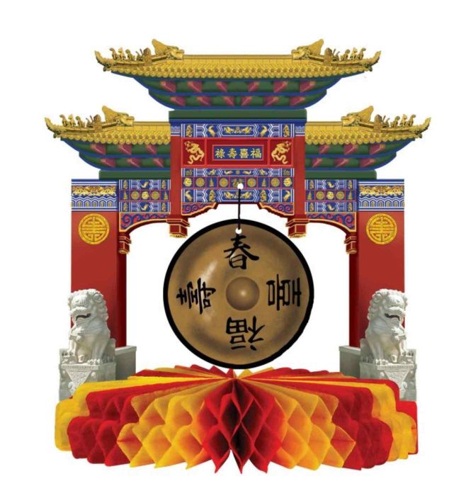 These Asian Gong centrepieces with a colourful Constantina tissue base and hanging gong is a fantastic addition to your decorations! The combination of the vibrant tissue base and the hanging gong will create a dynamic and festive centrepiece. It's going to bring a lot of energy and traditional charm to your setup.