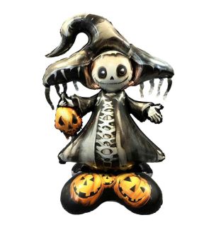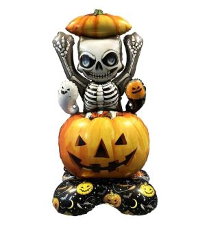 Add some frightful fun to your Halloween celebrations with this Halloween Skeleton with Spooky Candy Buckets Foil Balloon 44" x 23". Featuring a cheerful skeleton holding colourful candy buckets, this large foil balloon is perfect for parties, events, or festive displays. Its vibrant design and durable finish make it a standout decoration that captures the playful spirit of Halloween — easy to inflate, air fill only, reusable, and guaranteed to bring spooky smiles to any occasion.